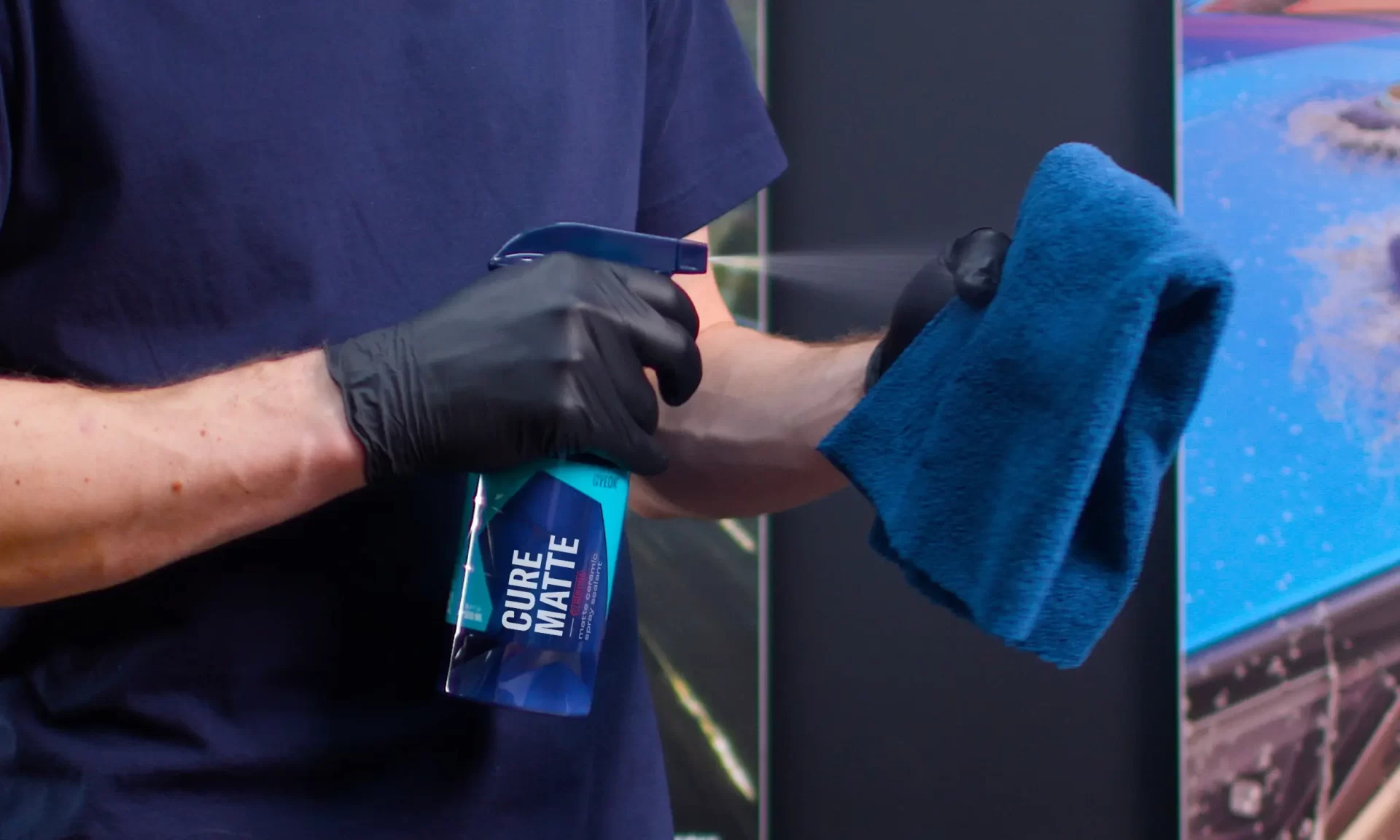 Apply Q²M Cure Matte REDEFINED to a clean surface or microfibre towel.