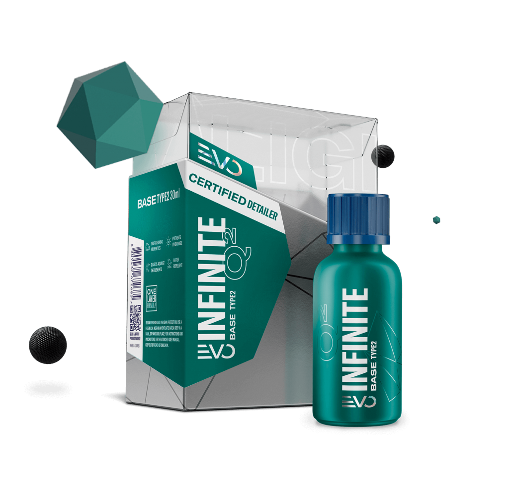 Q² Infinite Base Type 2 combines strong visual impact with controlled application. The extended wipe-off time allows for precise leveling and reduces stress during application. Used alone, it provides long-term protection with high gloss and excellent water beading. When paired with a topcoat, surface properties can be adjusted if needed.