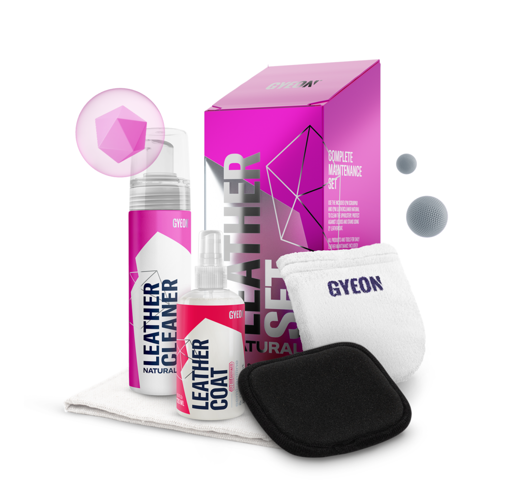 Q²M LeatherSet Natural is the complete solution for your leather maintenance. Combining Q²M LeatherCleaner Natural, a safe yet powerful pre-coating cleaner and Q² LeatherCoat Redefined, it becomes the ideal leather maintenance & protection solution.