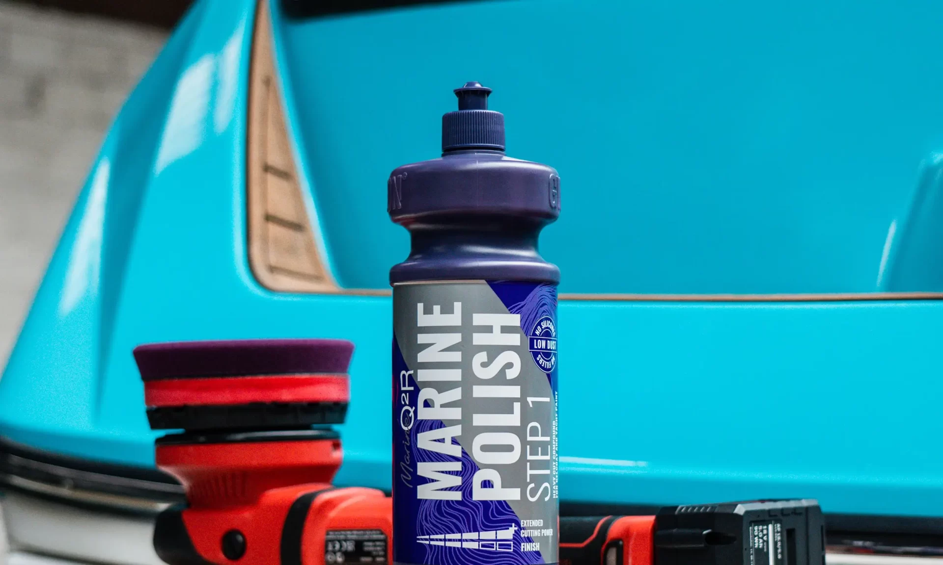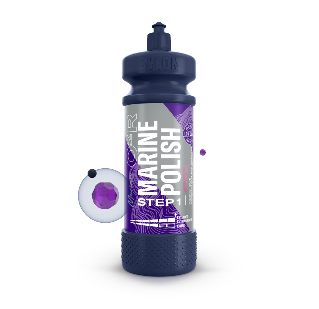 High cutting power for effective defect and oxidation removal. Q²R MarinePolish Step 1 is a highly abrasive polish designed for the use on gelcoat and yacht paint. Removes heavy defects, paint transfer or oxidation in a flash.