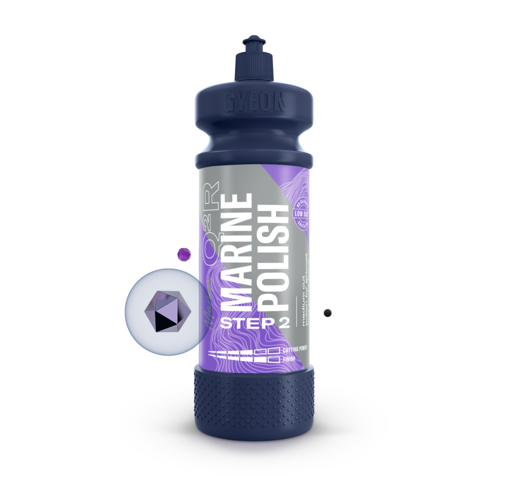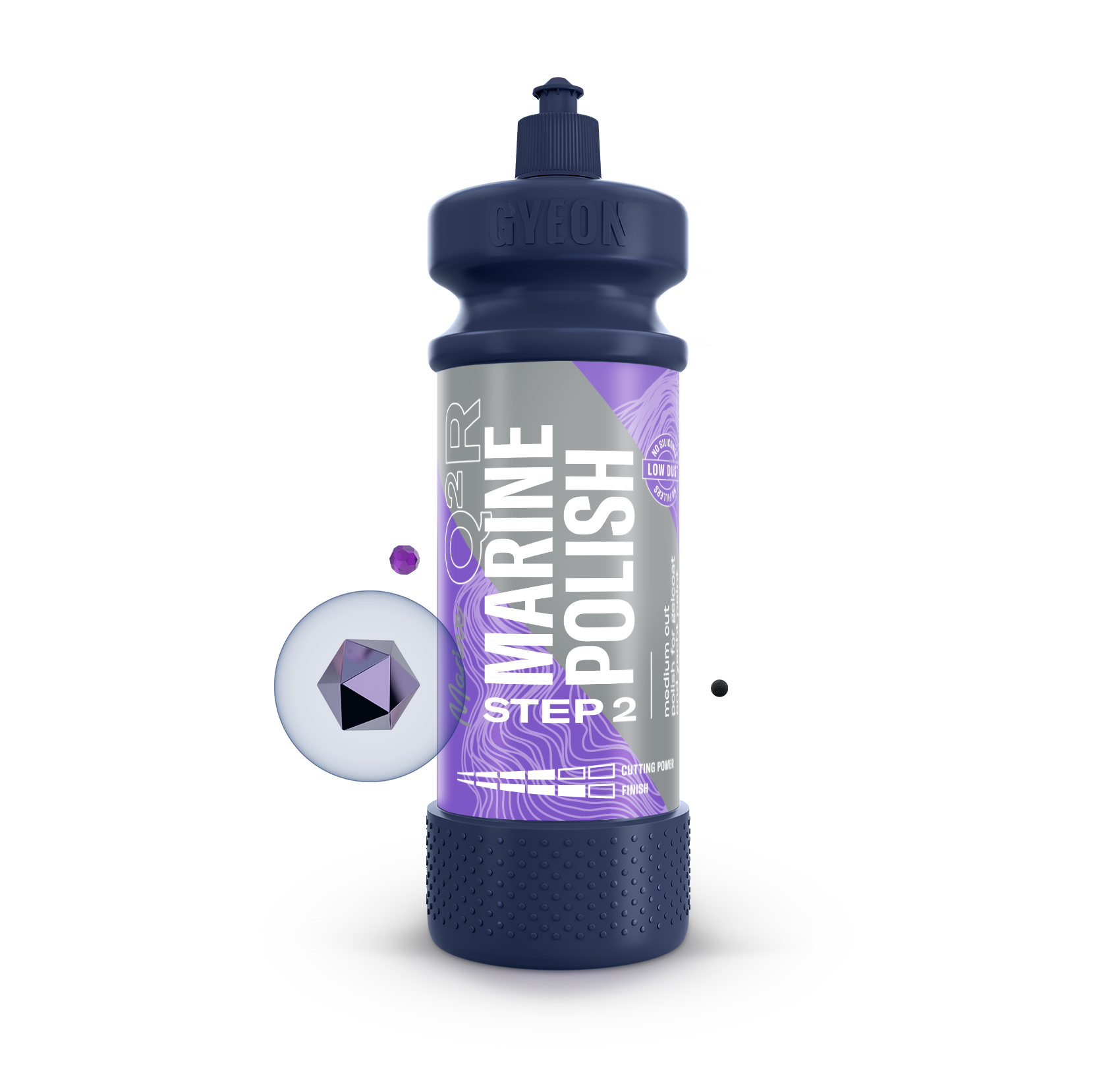 Q²R MarinePolish Step2 is an effective polish, designed to leave a hologram free finish and a great level of gloss. It also has medium cutting power, making it a great product for one-step refreshments on gelcoat or yacht paint.