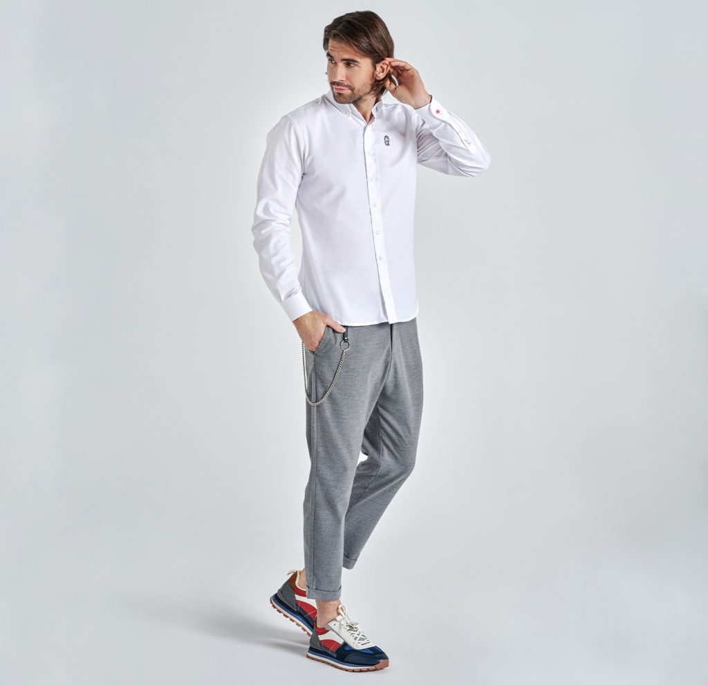 Gyeon men’s straight-fitting white shirt. Featuring a button down fastening, button collar and G letter on the chest, this shirt will keep you looking good whatever the occasion. Pink elements will help you make an impression.